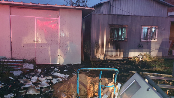 경산소방서(서장 정훈탁)는 지난 9일 최초발견자 이기대(70년생) 대원과 지인들이 차를 타고 화재현장인 진량읍 북리를 지나던 중 검은 연기가 분출되는 것을 발견해 재빨리 119에 신고하고 현장에 도착했다. 불길은 이미 스티로폼 컨테이너까지 번져 있어 검은 연기가 심하게 나고 있는 상황이었다.