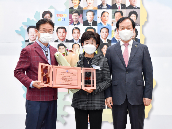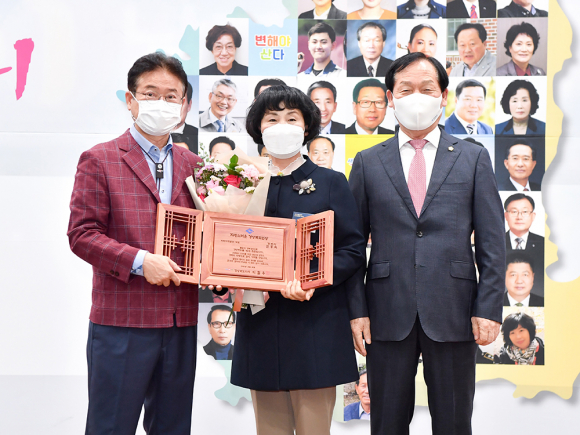 | ↑↑ 2021 자랑스런 도민상 수상한 원종숙 경산시마을평생교육지도자협의회장(가운데). |