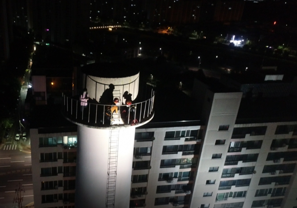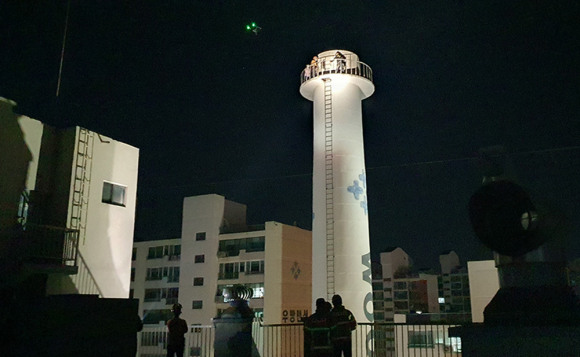 경산소방서(서장 정훈탁)는 정평동 우방맨션 1차 단지 내 굴뚝(높이 60m)에 사람이 올라가 있다는 신고를 받고 출동해, 굴뚝 반대쪽 옥상에 올라가 드론을 투입하여 구조대상자 1명을 발견하는데 일조했다고 밝혔다.