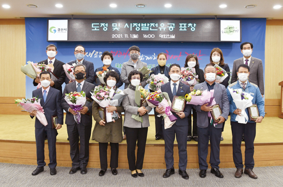 시는 지난 1일 시청 대회의실에서 11월 정례석회를 개최하고 도정 및 시정발전 유공자에 대한 시상식을 가졌다.