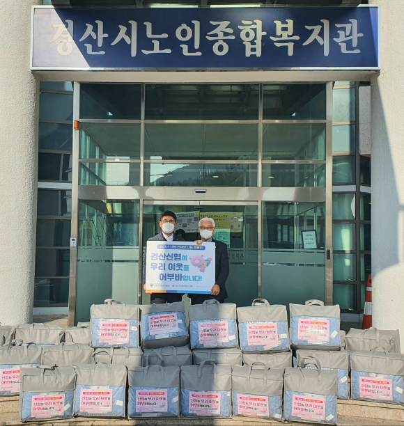 경산신협(이사장 이상수)은 10월 27일 경산시노인종합복지관을 찾아 어려운 이웃에게 전달할 이불 29채(100만 원상당)를 기탁하며 따뜻한 겨울나기를 위한 나눔 활동에 박차를 가했다.