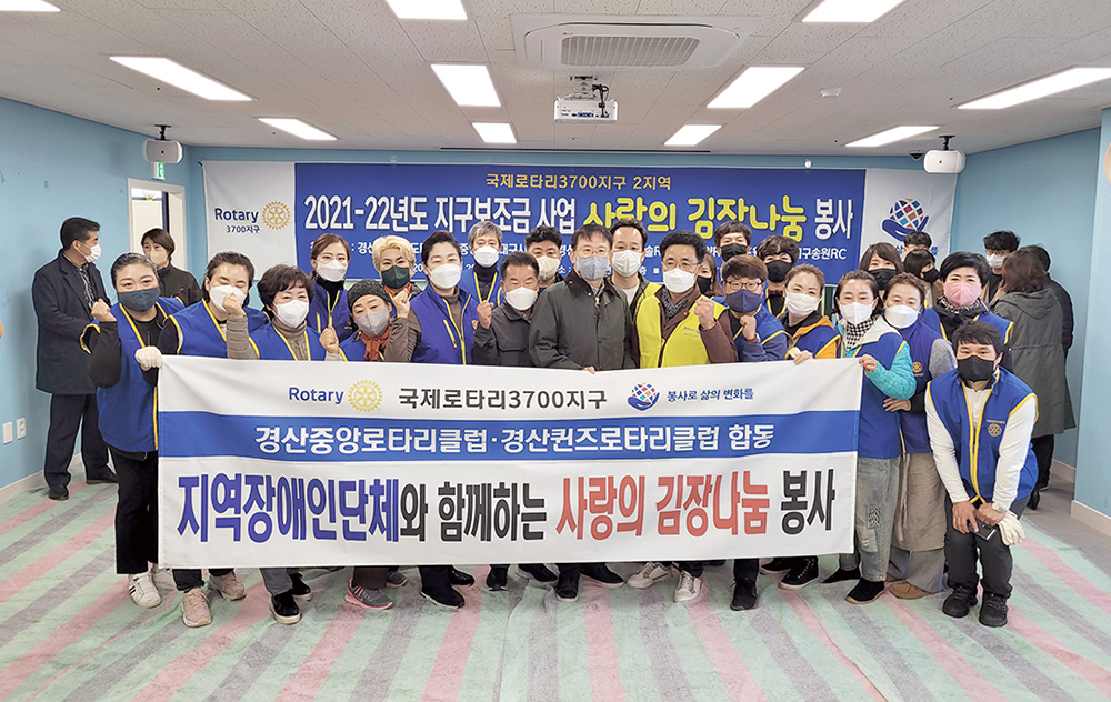 국제로타리 3700지구 2지역 장애인단체에 김장 전달