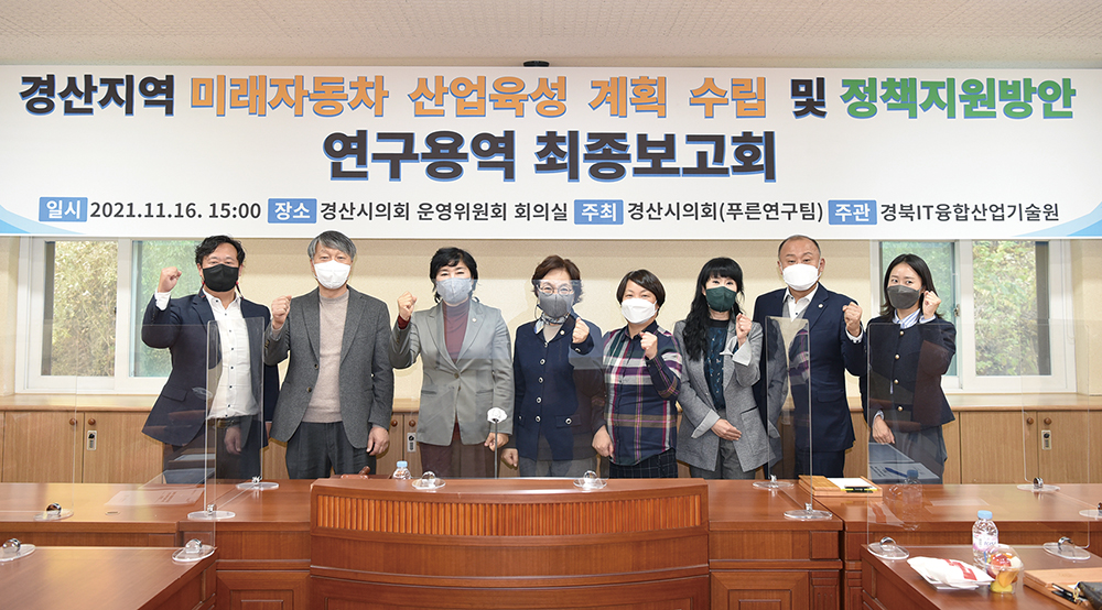 경산시의회 의원연구단체 푸른연구팀경산지역 미래자동차 산업육성 계획수립과 정책지원 방안 연구용역 최종보고회를 개최했다.