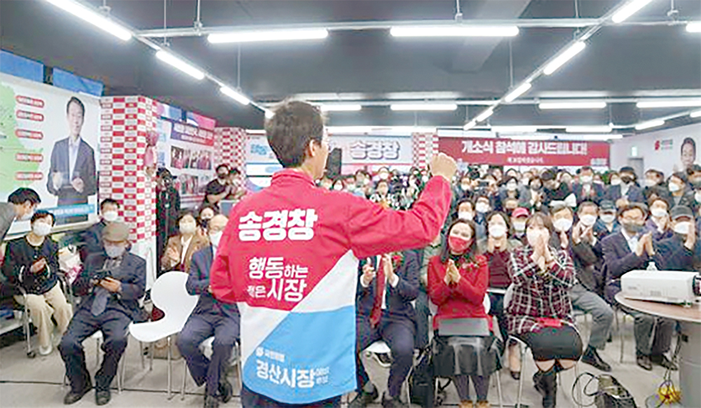 송경창 경산시장 예비후보지난 주말 오거리 경산시외버스정류장 건너편에 선거사무소를 개소하고 필승을 다졌다. 개소식에는 새정부 인수위원회 주요인사와 국회의원, 지역 주요내빈들이 참석해 사무식 개소를 축하했다.