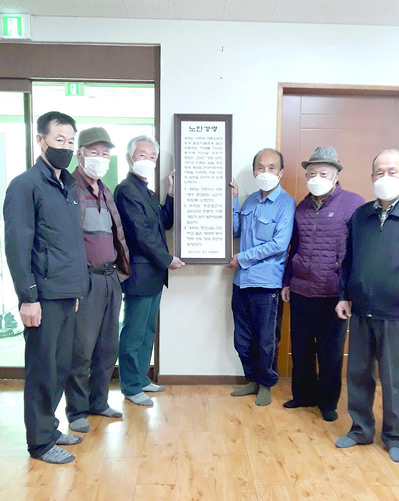 손항웅 수석부회장은 “경로당을 출입하는 모든 경로회원은 ‘노인 강령’을 준수하고 젊은이들에게 솔선수범했으면 좋겠다”고 말했다.
