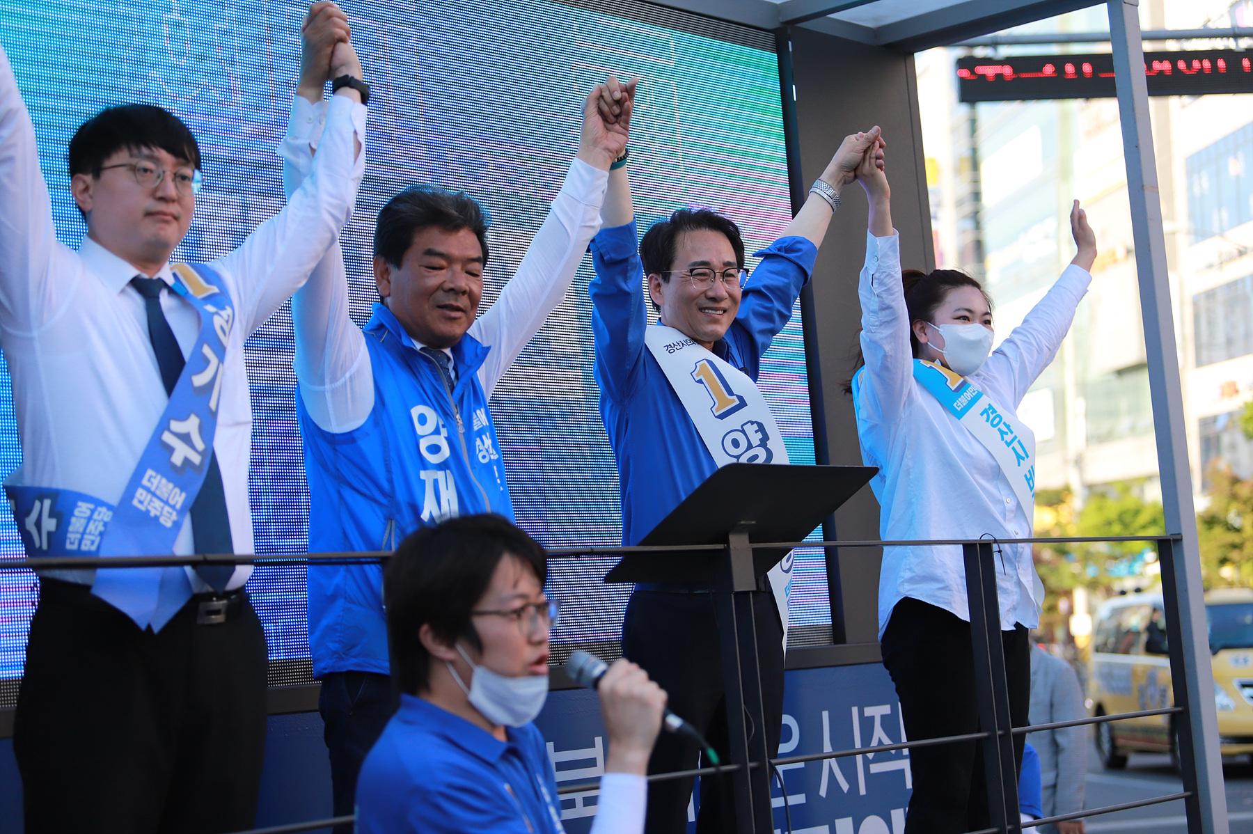 마지막으로 이의원은 양재영, 성기수, 김기현 후보와 손을 맞잡으며 경산유세 일정을 마쳤다.