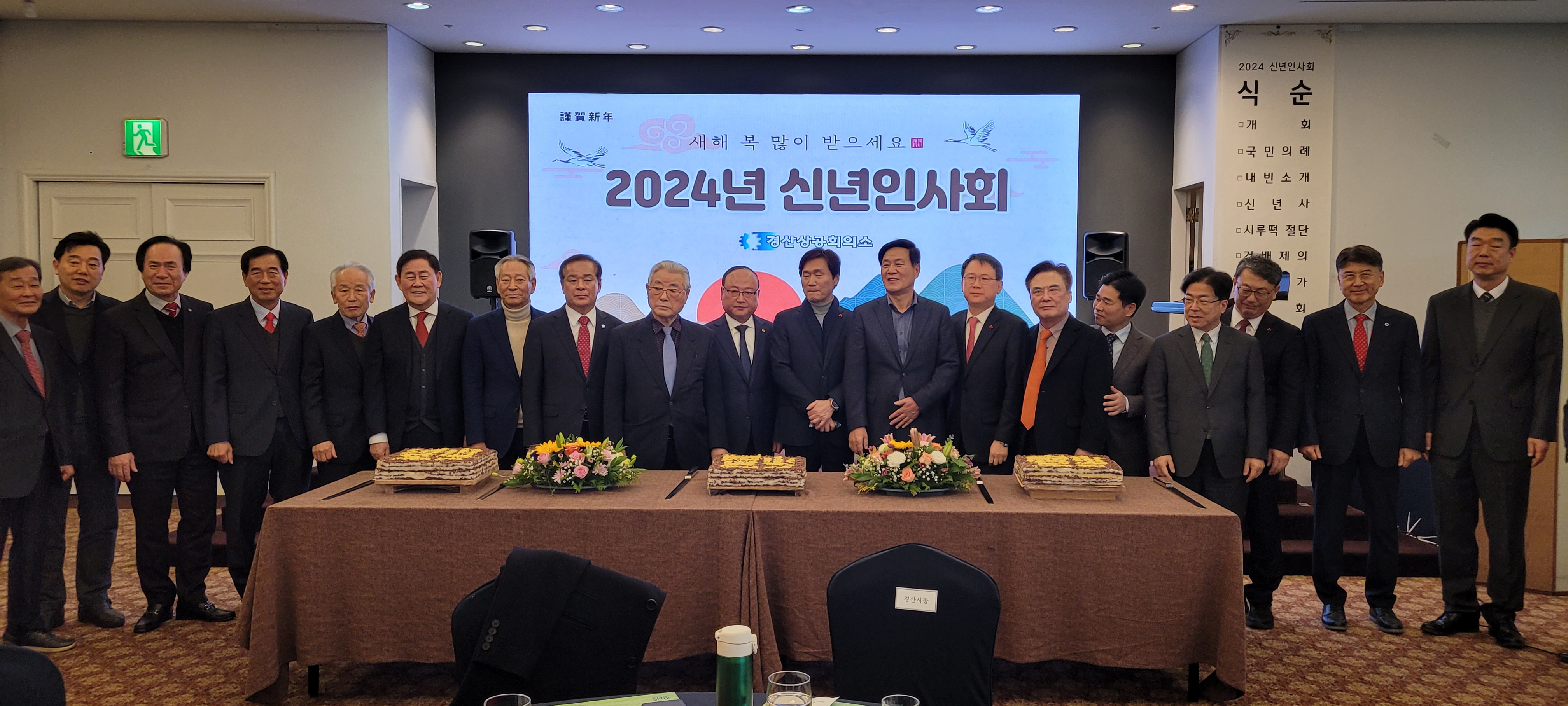 ↑↑ 경산상공회의소가 주관하는 2024 신년인사회가 지난 3일 인터불고 경산CC 대연회장에서 열렸다. 이날 신년인사회에는 조현일 시장과 박순득 의장 및 시도의원, 윤두현 국회의원, 양재영 더불어민주당 경산지역위원장, 안태영 상의회장과 상공위원들, 최재림 노인회장, 이부희 문화원장, 최경환 전 경제부총리와 윤영조 최영조 전 시장, 박순진 대구대 총장 등 지역대학 총장, 이철우 지사를 대신해 김주령 경북도 국장, 이우경 도자유총연맹 회장, 김점두 도체육회장, 강영근 시체육회장 등이 참석해 2024년 새해 경산시의 희망찬 출발을 응원했다.