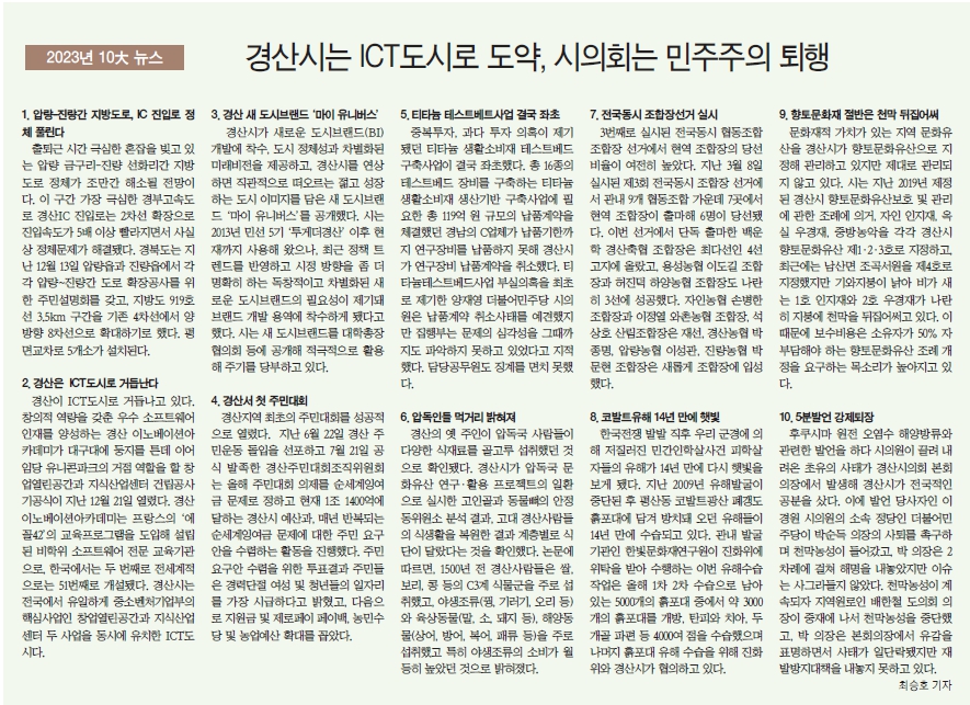 | ↑↑ 경산신문사가 뽑은 2023년 경산의 10대 뉴스. |