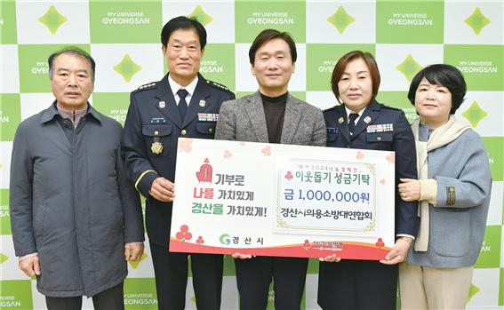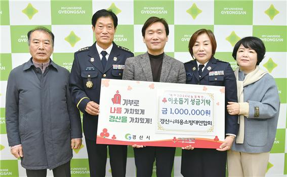 경산시 의용소방대연합회(회장 김종길, 정유선)가 경산시에 이웃돕기 성금 100만원을 기탁했다.