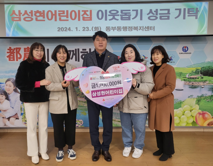 | ↑↑ 작년에 이어 나눔캠페인에 동참한 삼성현어린이집 이현서 원장과 교사들. |