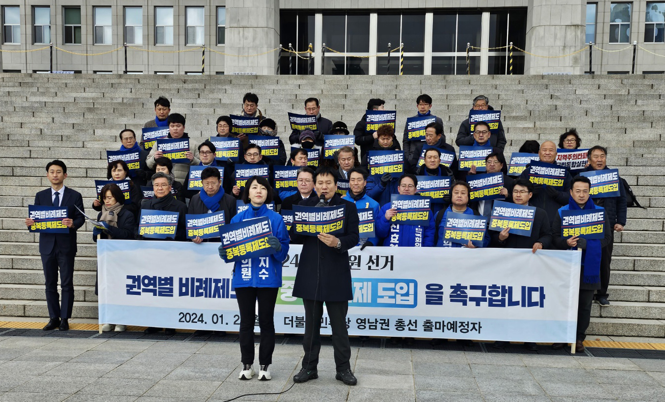 대구 경북 등 영남지역 민주당 5개 시도당 총선 출마예정자들이 오는 4월 총선에서 권역별 비례제도와 중복등록제(석패율제 등) 도입을 주장하고 나섰다.