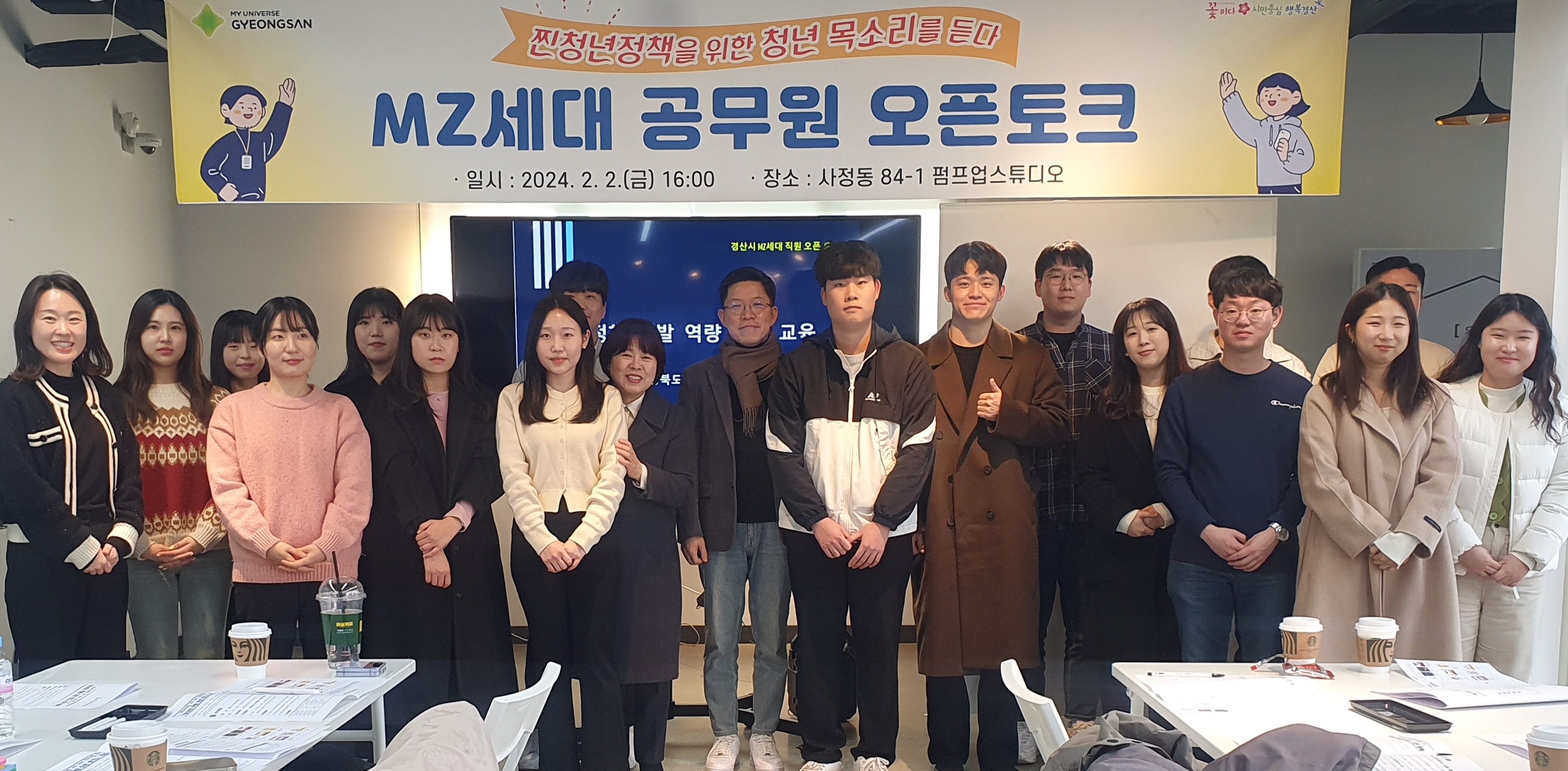경산시(시장 조현일)가 2일, 경산역 옆에 있는 펌프업스튜디오에서 경산시 청년정책 기본계획 수립을 위한 MZ세대 공무원 오픈토크를 개최해 젊은 공무원들의 의견을 공유하고 자유롭게 소통하는 자리를 마련했다.