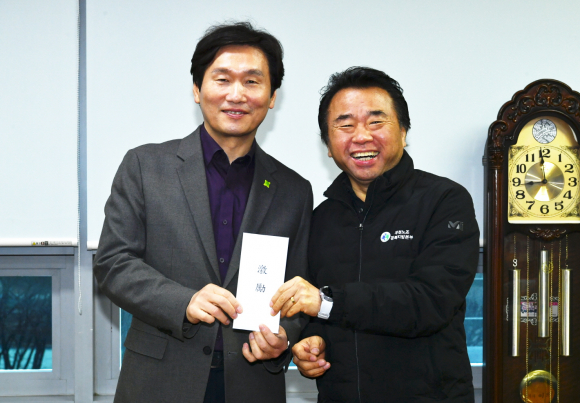 | ↑↑ 조현일 경산시장이 설 명절 비상근무 중인 우체국을 방문해 근무자들을 격려하고 있다. |