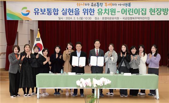 교육^보육 수업 현황을 직접 참관했으며 관계자들과의 간담회로 현장 관계자의 생생한 목소리를 직접 청취했다. 양 기관은 유보통합 정책 필요성에 대한 공동 인식을 바탕으로 유보통합 정책 실현을 위해 긴밀히 협력함을 목적으로 하는 공동선언문을 발표했다.