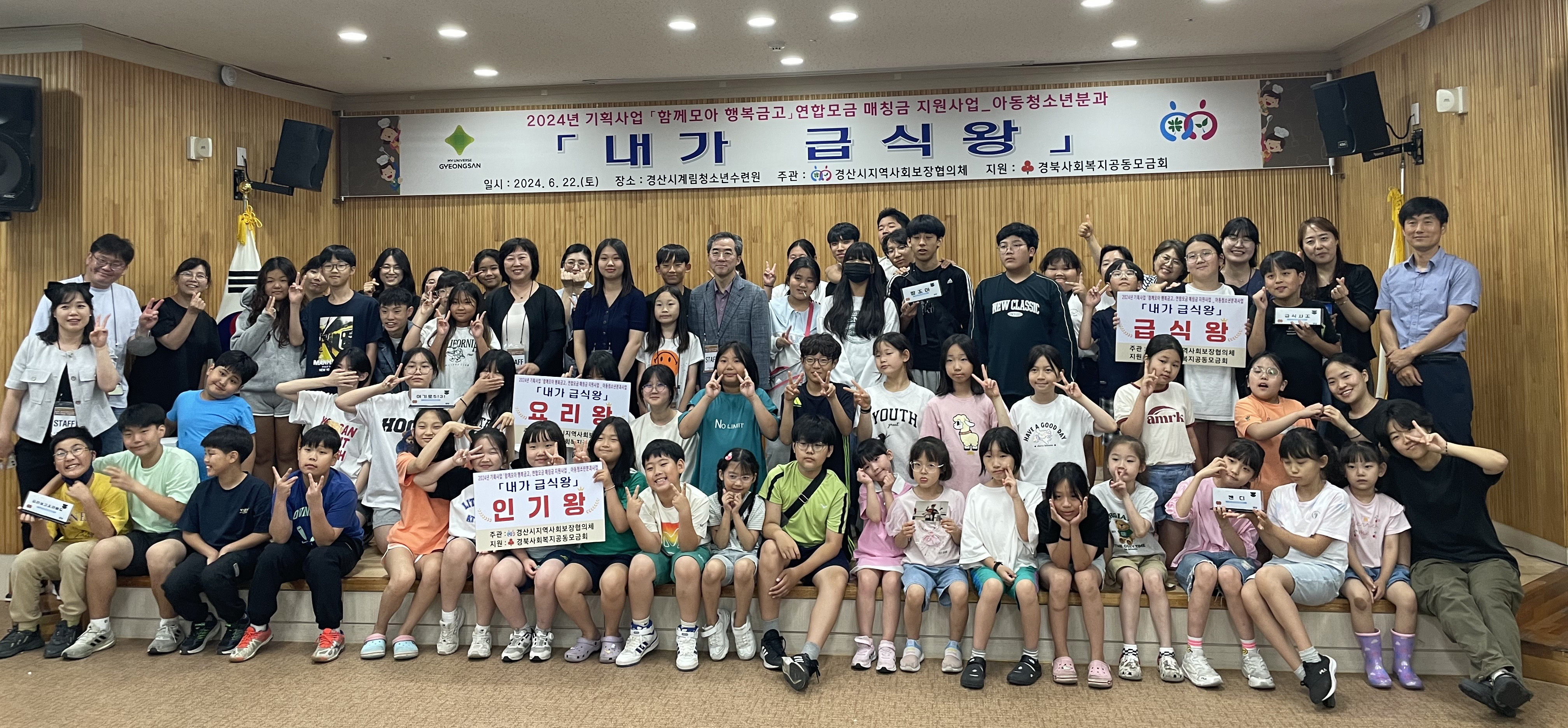 | ↑↑ 요리경연대회 관계자들과 행사에 참여한 아동, 청소년들이 기념 촬영을 하고 있다. |