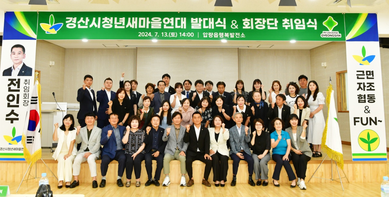 경산시청년새마을연대 초대 전인수 회장이 취임했다. 취임식장에는 조현일 시장, 조지연 국회의원을 비롯해 도·시의원, 경산시새마을회장단 및 회원, 기관 단체장 등 70여 명이 참석해 청년새마을연대의 새 출발을 축하했다.