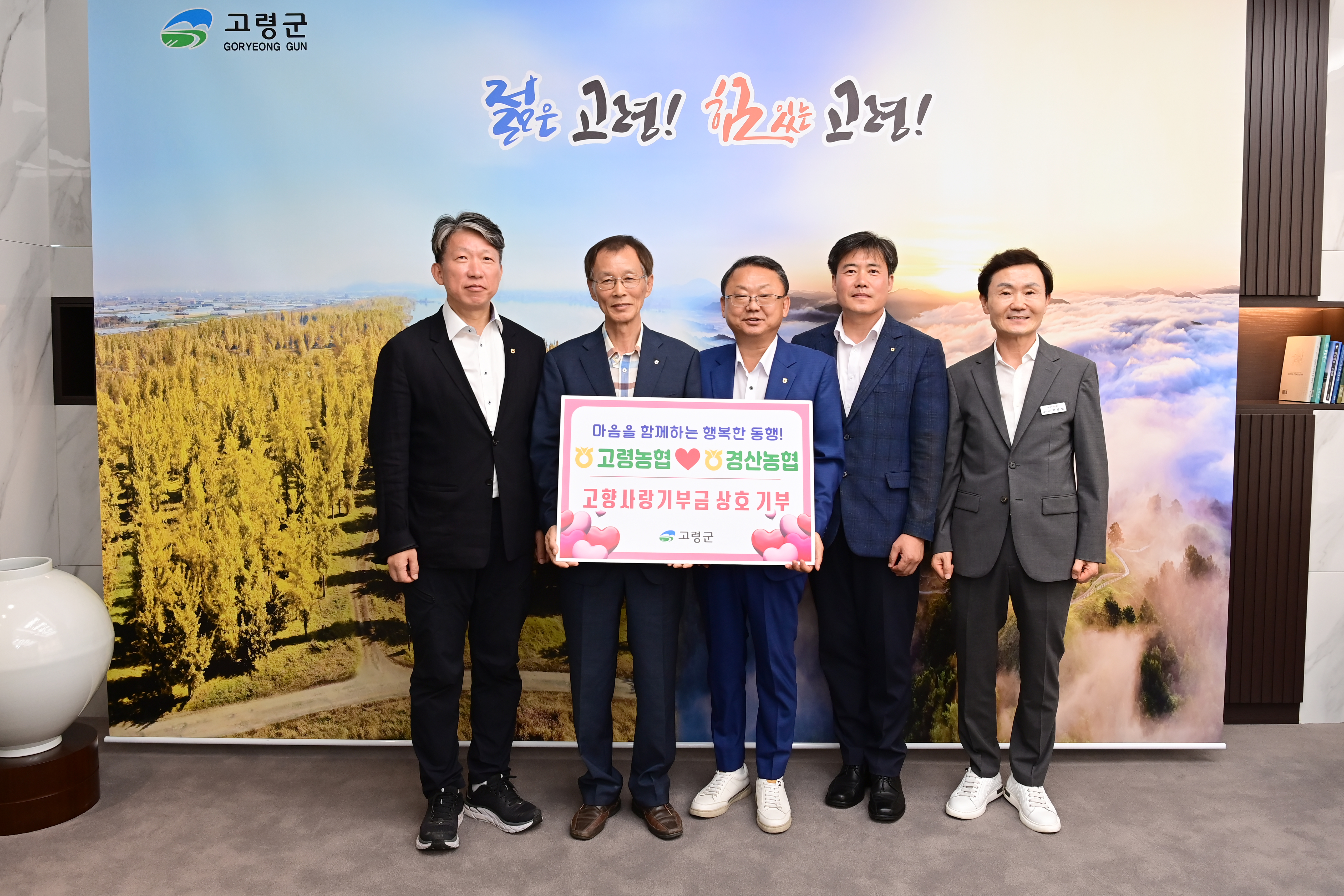 경산농협(조합장 박종명)과 고령농협(조합장 박종순)이 농협 상호 간 친목을 도모하고 업무적인 유대관계를 형성하기 위해 고향사랑기부금 상호기부 기탁식을 가졌다.