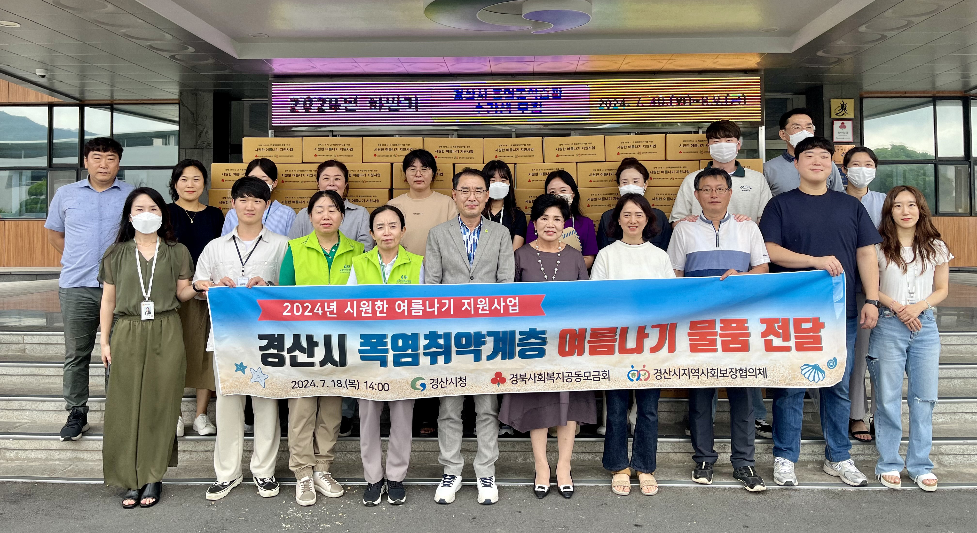 경산시지역사회보장협의체(공공위원장 조현일, 민간위원장 정인숙)가 시원한 여름나기 지원사업으로 10만원 상당의 물품 245박스를 전달했다. 시원한 여름나기 지원사업은 경산시 지역사회보장협의체와 경북공동모금회가 공동 기획한 사업으로 2017년부터 매년 여름마다 진행하고 있다.
