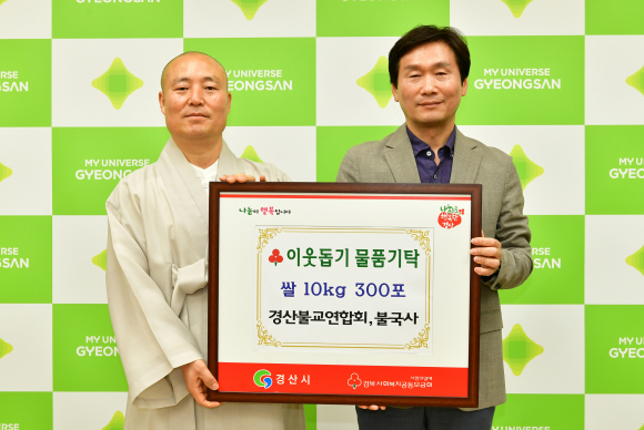 경산불교연합회(대표 선웅스님)가 어려운 이웃을 위해 사용해 달라며 쌀300포(10kg)를 경산시에 기탁했다.