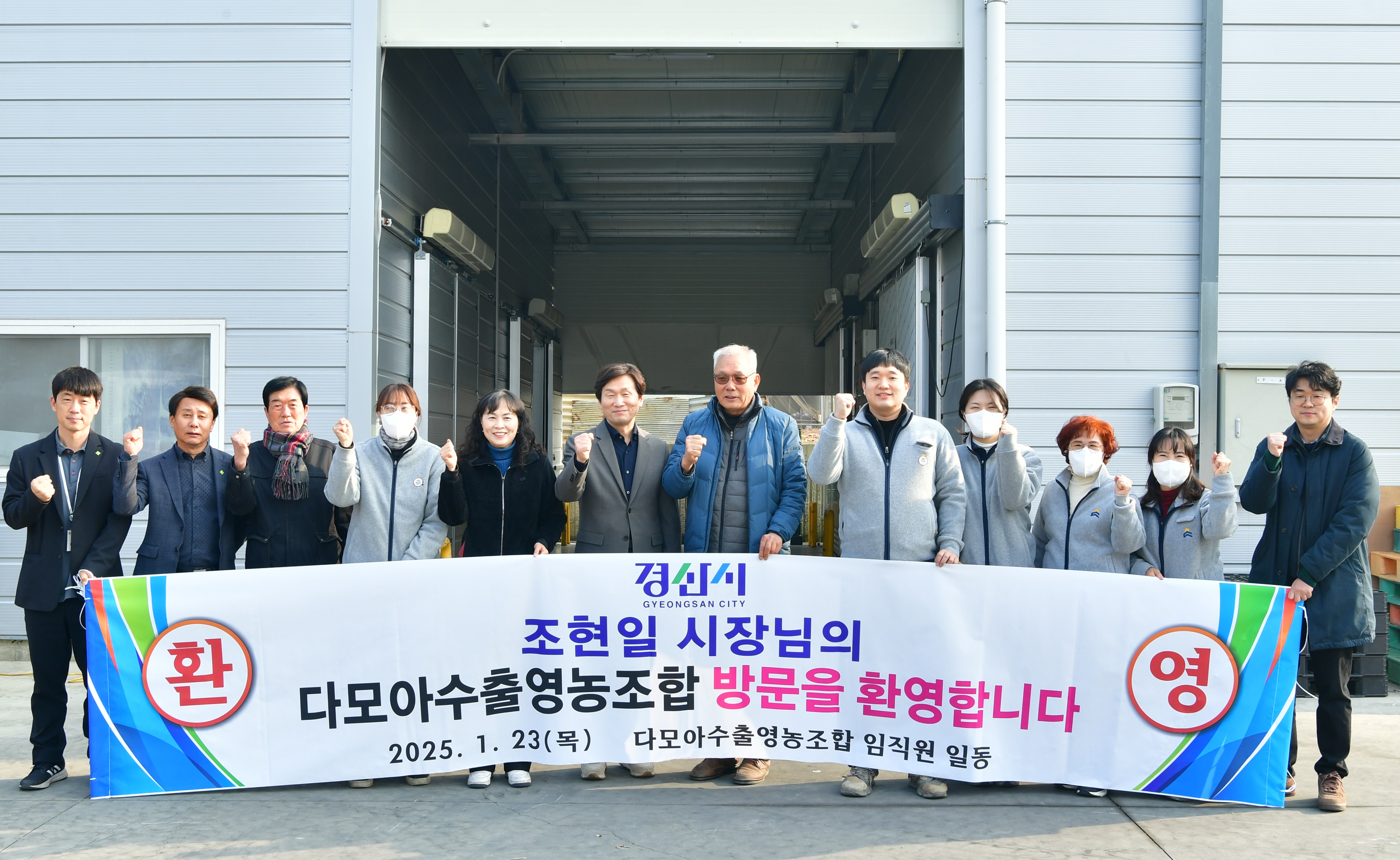 | ↑↑ 조현일 경산시장은 다모아수출영농조합을 방문해 격려하고 있다. |
