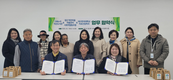 역전마을 마을관리사회적협동조합(이사장 오희순)과 대구한의대 치유산업과(학과장 귄기창), 기해누리작은도서관(관장 이유진)은 지난 19일 MOU를 체결하고 역전마을을 아이들이 뛰어노는 공동체로 만들어가기로 했다.
