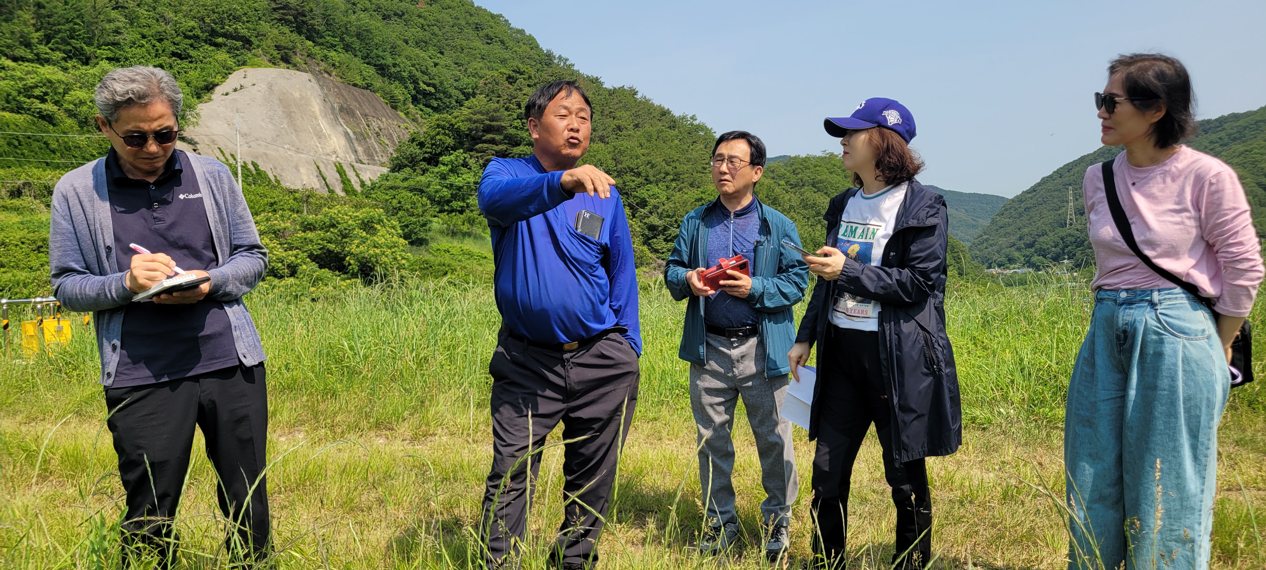 | ↑↑ 탐방자들이 하도지 탐방 후 못도감 천정길씨의 설명을 듣고 있다. |