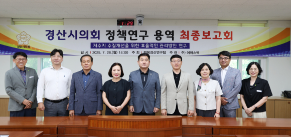 경산시의회 의원연구단체 '행복경산연구팀(대표 윤기현)'이 지난 달 「저수지 수질개선을 위한 효율적인 관리방안 연구」 최종보고회를 가졌다.