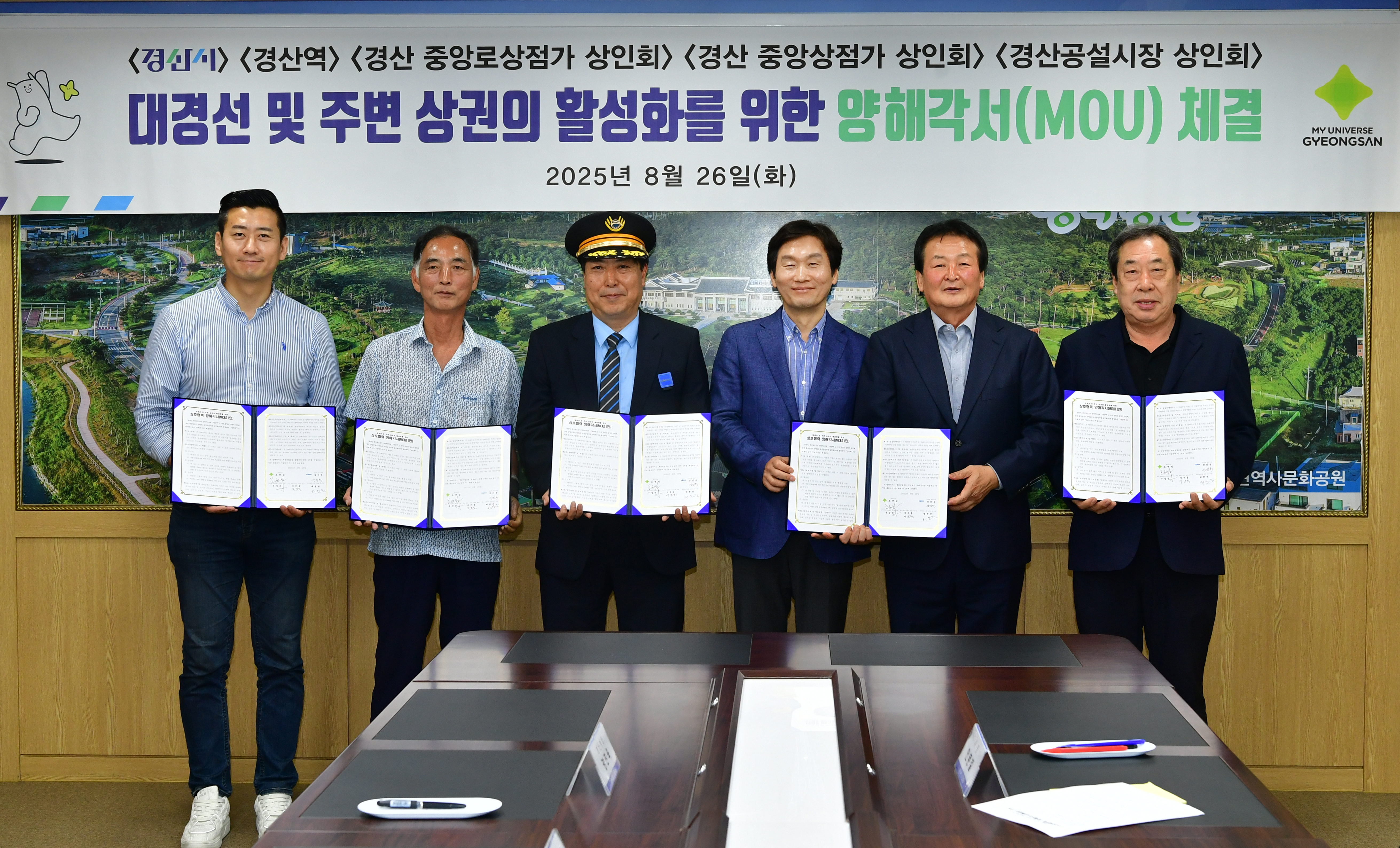경산시, 경산역, 중앙로상점가상인회, 중앙상점가상인회, 공설시장 상인회 5개 기관이 대경선 연계 경산역 주변 상권 활성화를 위해 양해각서(MOU)를 체결했다.