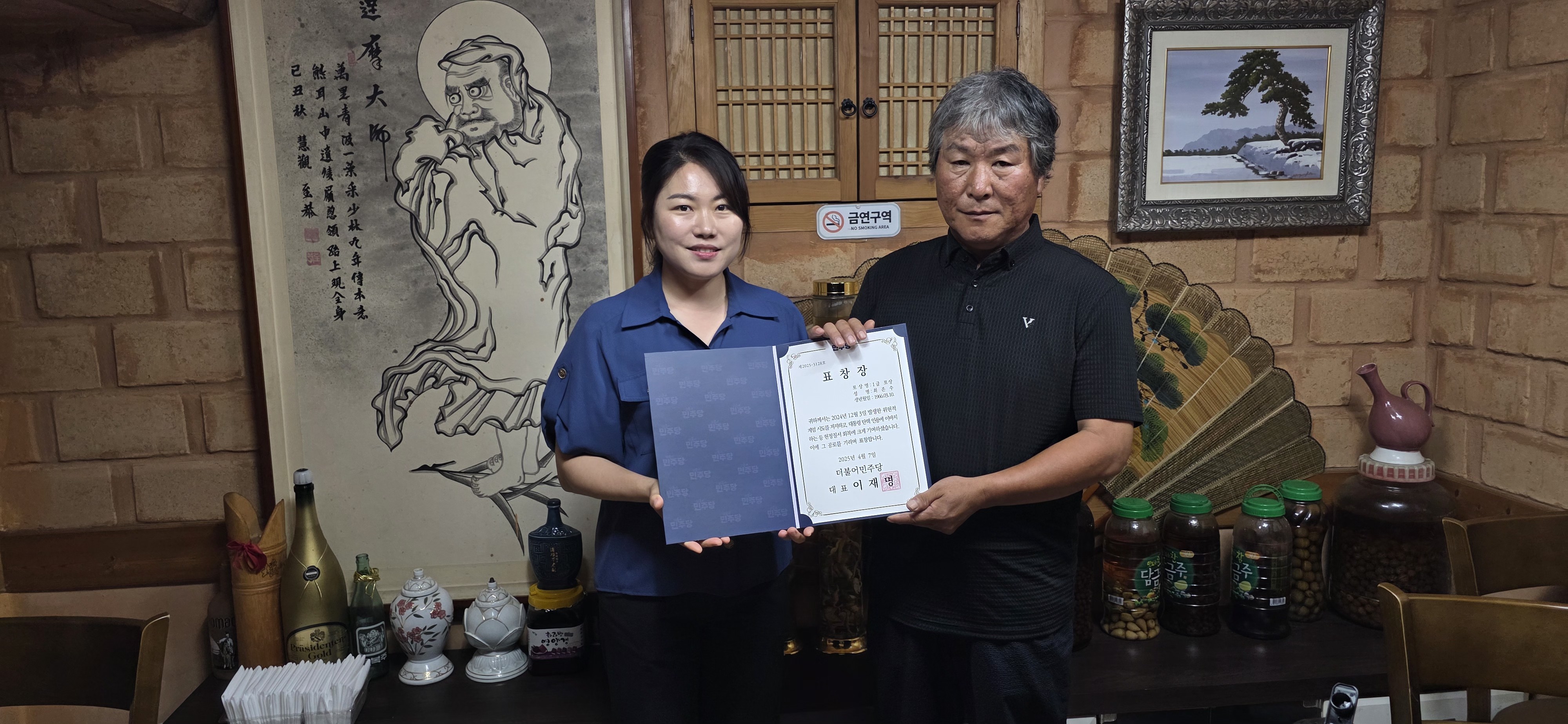 ↑↑ 민주당으로 내란종식 1등급 포상을 받은 경산시농민회 최존수 회장. 왼쪽은 경산시위원회 김기현 위원장.