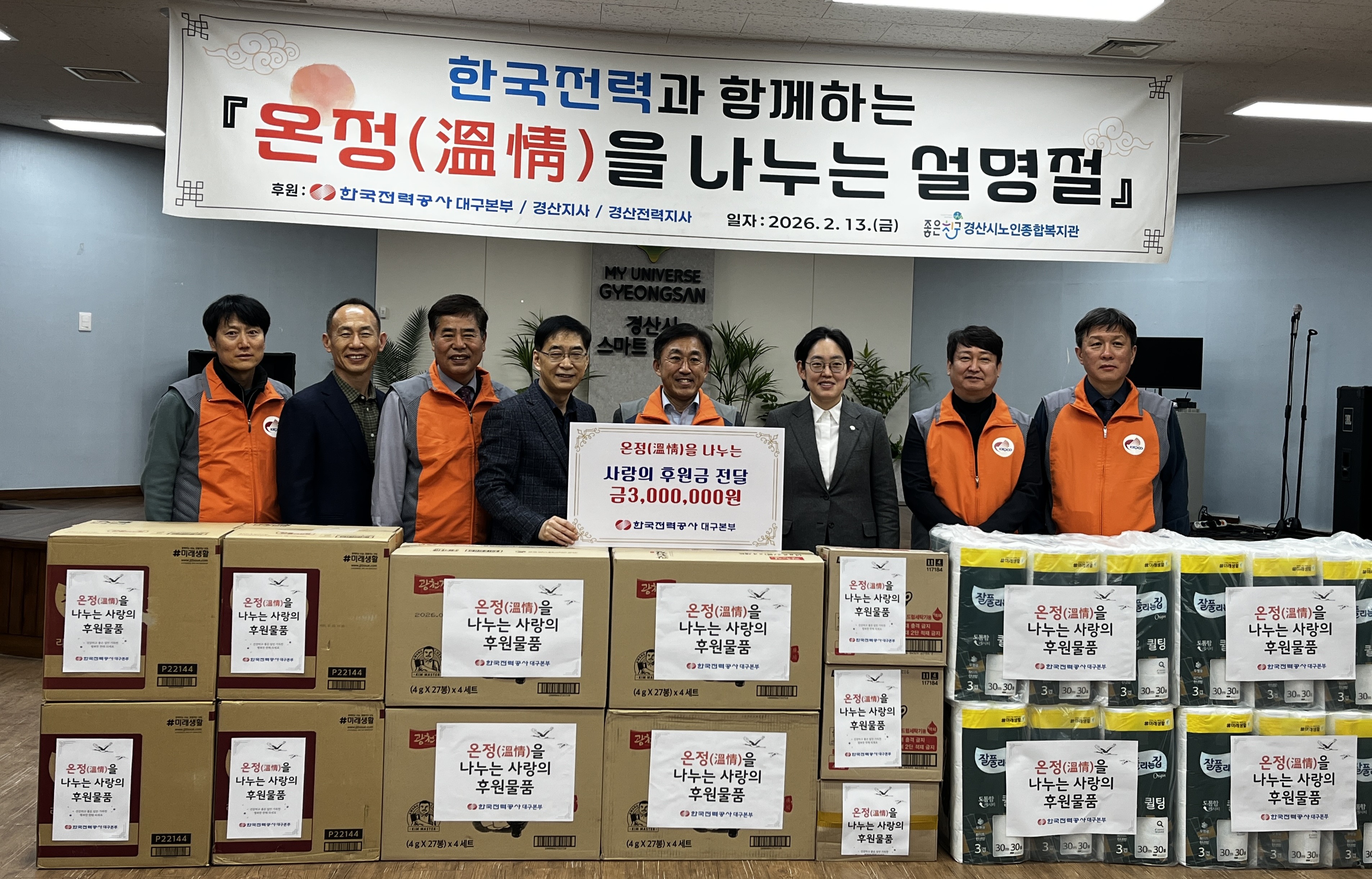 한국전력공사 대구본부와 경산지사, 경산전력지사는 지난 설 명절을 맞아 온누리상품권을 활용해 필요한 물품을 구매하고 이를 지역 내 저소득 어르신 및 차상위 가정 100여 명에게 지원했다.