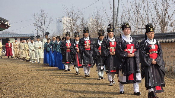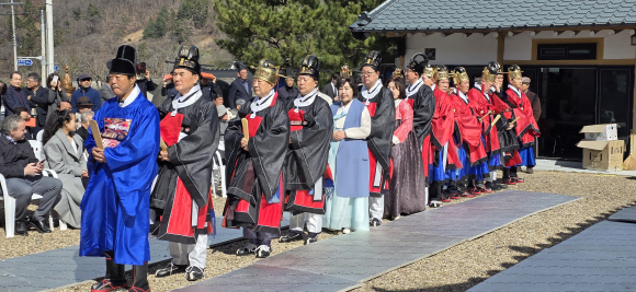 향교 대성전에서 제사를 지내는 석전대제가 지난 24일 경산향교를 비롯해 하양 자인향교에서 열렸다. 석전대제는 매년 음력 2월과 8월 상정일에 공자를 비롯한 4성 10철 18현을 모시고 제사를 지내는 국가중요무형문화재다.