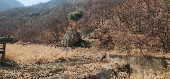 길가에서 바라본 두꺼비 바위와 계곡의 맑은 물은 경산 남천의 명소로서 손색이 없을 것 같다.