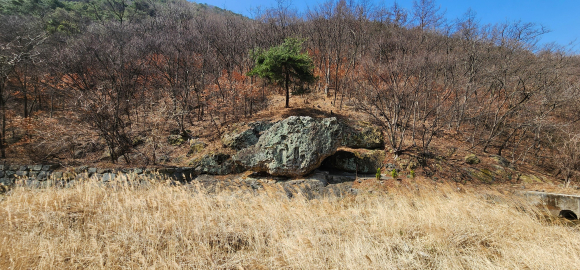 이 바위는 남천면 산전리 경흥사 가는 방향의 개울가에 있다. 바위의 형상이 마치 두꺼비가 개울가에 웅크리고 앉은 형상을 하고 있기에, 필자는 편의상 ‘두꺼비 바위’로 이름하였다. 이 바위는 산자락 아래 독립적으로 평평한 암반에 놓여 있다. 멀리서 보면 흡사 애석인들이 명품석을 수반에 올려 감상하는 수석처럼 보였다.