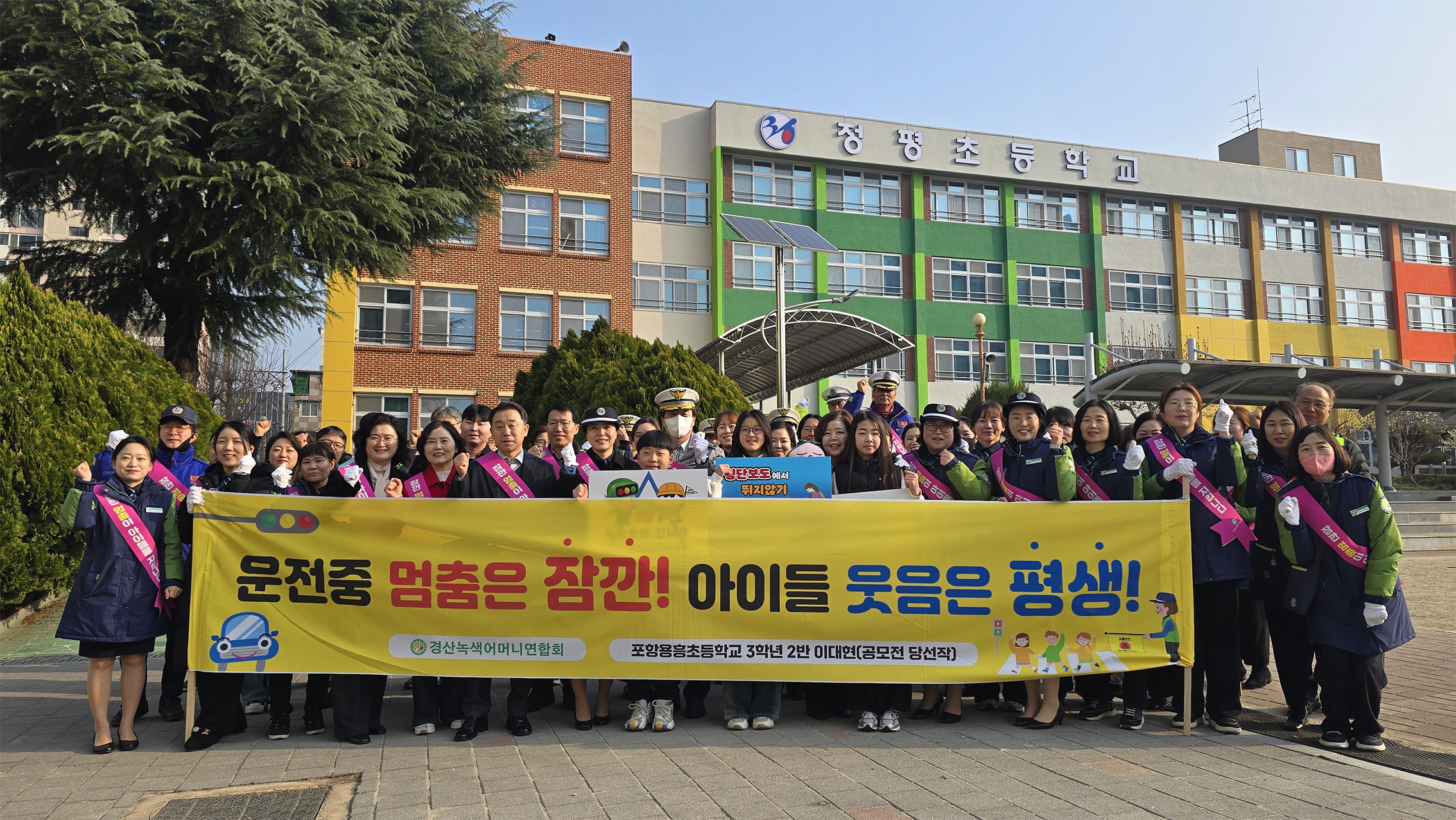 이날 캠페인은 녹색어머니연합회 회장단 20명, 경산교육장 등 10명, 모범운전자회 10명, 경산경찰서 15명, 경산시청 6명 총 61명이 참여하여 등교하는 학생들을 대상으로 ‘길을 건널 때는 차를 보면서 걸어서 건너기’ 보행 안전을 알려주고, 운전자들에게 어린이 보호구역 내 서행 및 교통법규 준수를 당부했다.