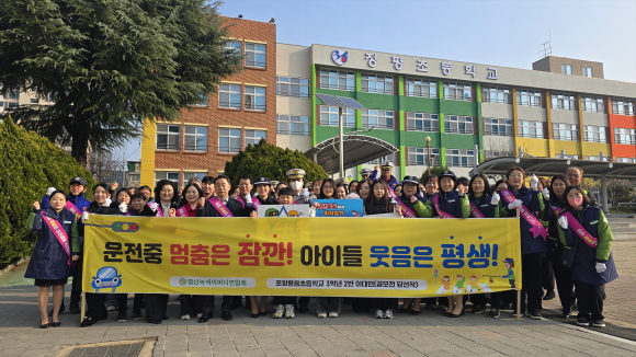 경산경찰서기 새 학기를 맞이하여 지난 17일 정평초등학교 어린이보호구역 일대에서 어린이 교통사고 예방과 안전한 통학로 조성을 위해 ‘등굣길 어린이 교통안전 캠페인’을 실시했다.