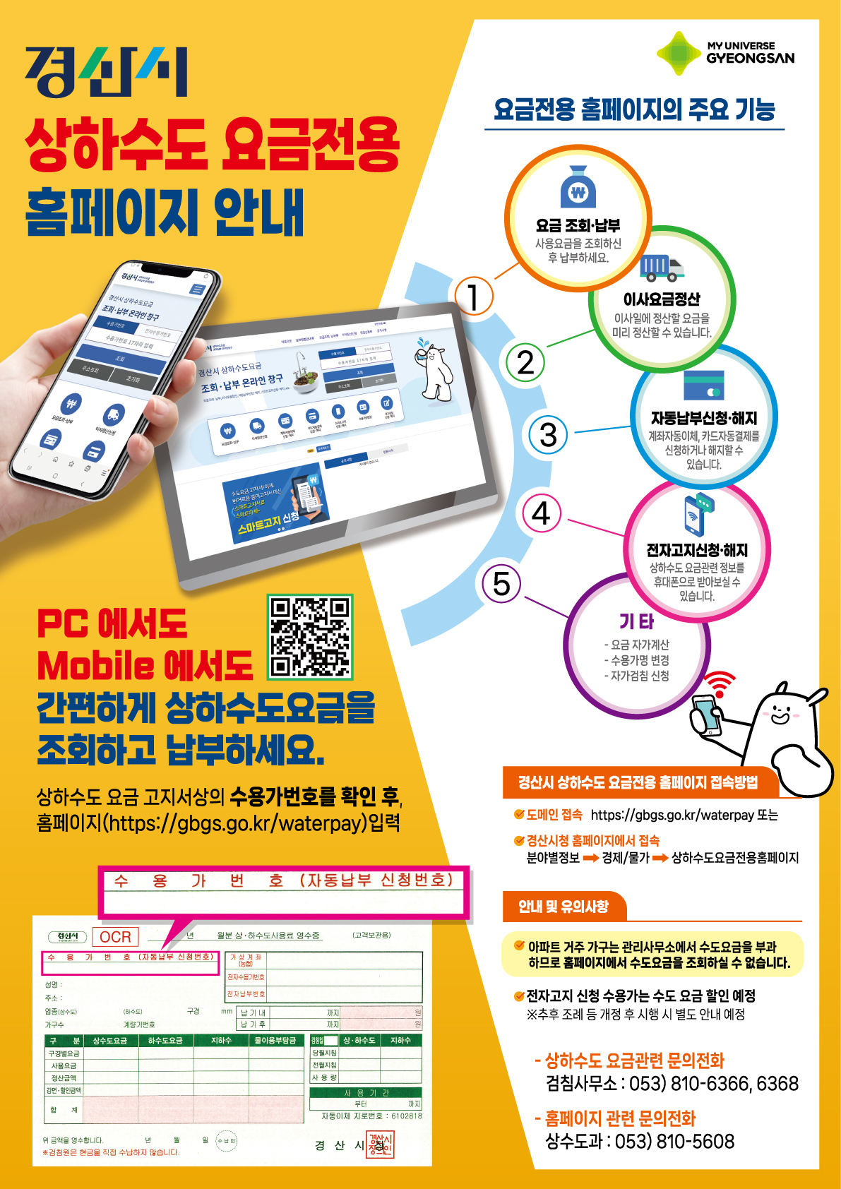 경산시가 상하수도 요금 조회 및 납부 편의를 위해 상하수도 요금 전용 홈페이지를 개설했다.